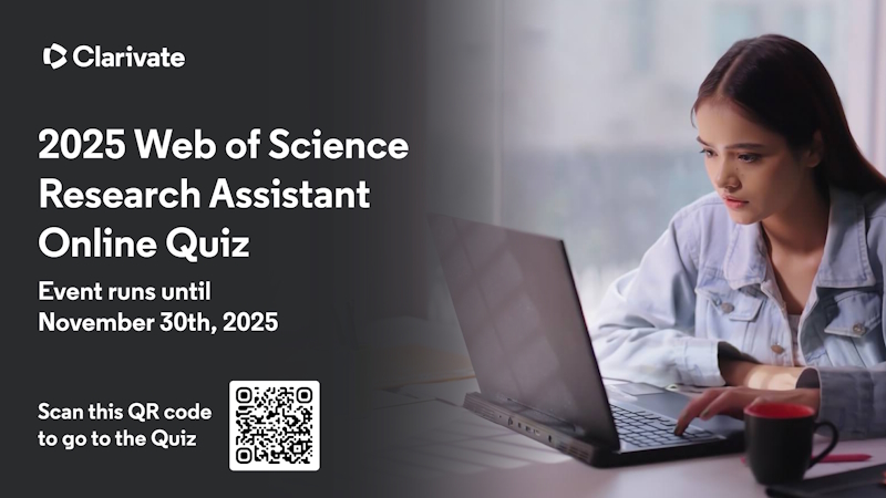 The Web of Science AI Research Assistant Online Quiz organized by Clarivate is running from now until 30 November 2025. Web of Science is a well-known database which publishes Journal Citation Reports (JCR) and impact factors to inform research performance and analysis.
