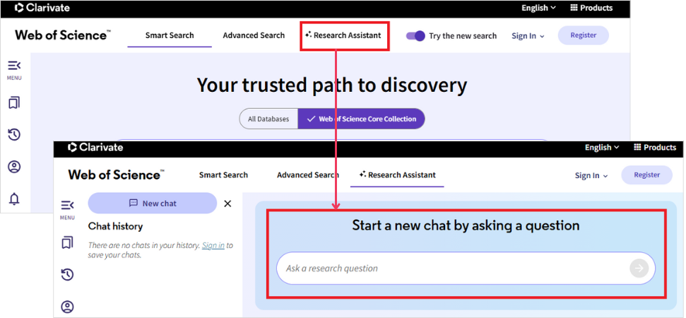 Access Web of Science from the library website. Then access Web of Science AI Research Assistant.